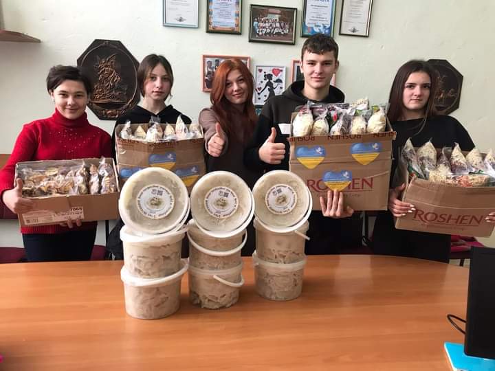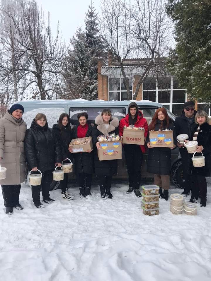 На минулому тижні передали чергову партію, на Донецький напрямок: сухих борщів, вареників з картоплею та капустою, сушених яблук, оселедців.