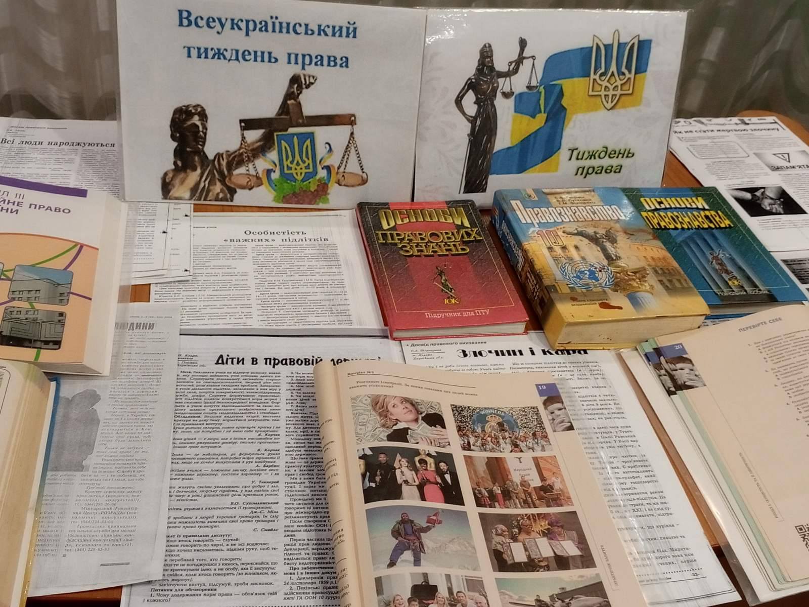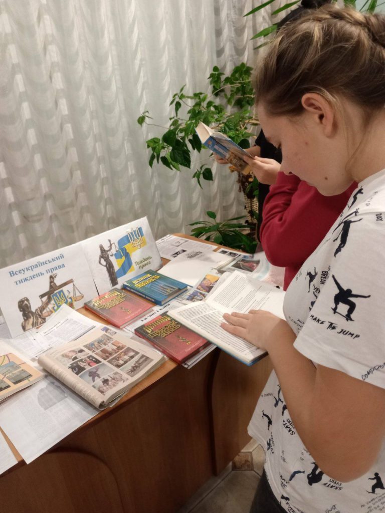 У рамках Всеукраїнського тижня права в читальному залі бібліотеки вихователями була проведена книжкова виставка “Молодь і право” та тематична виховна година “Знаємо свої права, виконуємо свої обов’язки”.