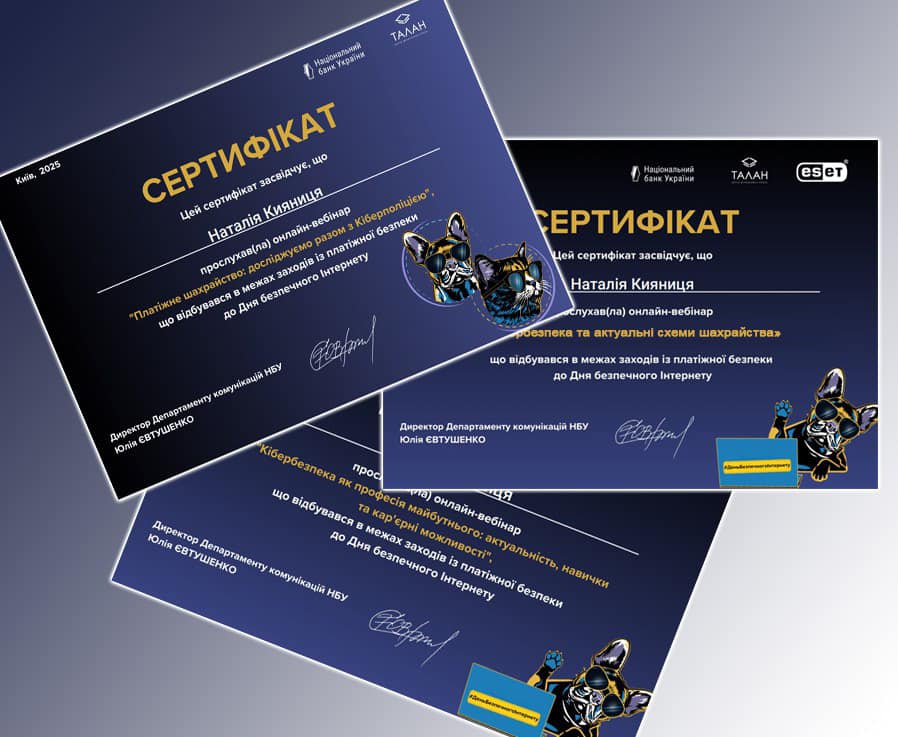 Усі учасники отримають сертифікати, що підтверджують їхні знання у сфері кібербезпеки.Дякуємо організаторам та спікерам за цінний досвід!