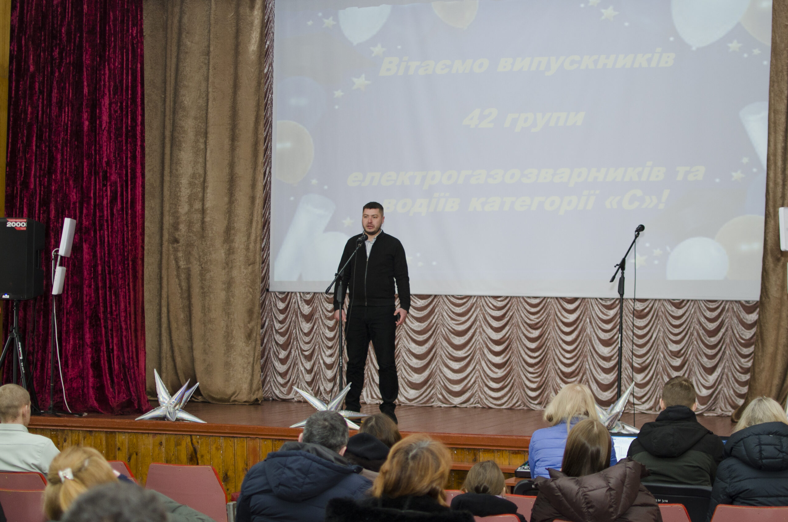 З привітальним словом звернувся також наставник випускної групи, майстер виробничого навчання Олександр Матвійчук. Він побажав випускникам впевненості у досягненні мети, здійснення мрій та успішного старту.