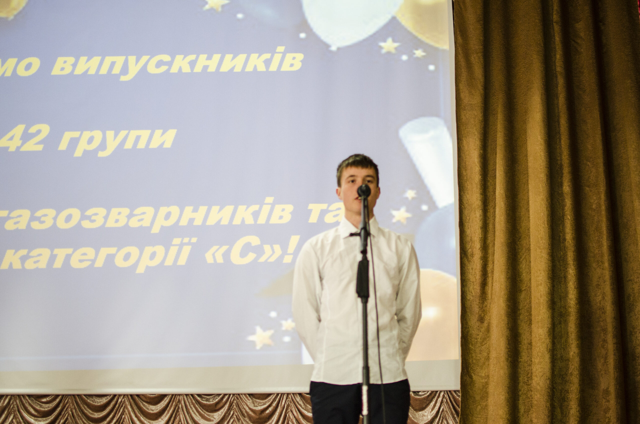 Слово надавалося випускнику Гончарову Кирилу, який висловив вдячність від усієї групи викладачам, майстрам виробничого навчання, адміністрації та технічному персоналу за турботу, терпіння, отримані знання та затишок протягом років навчання.