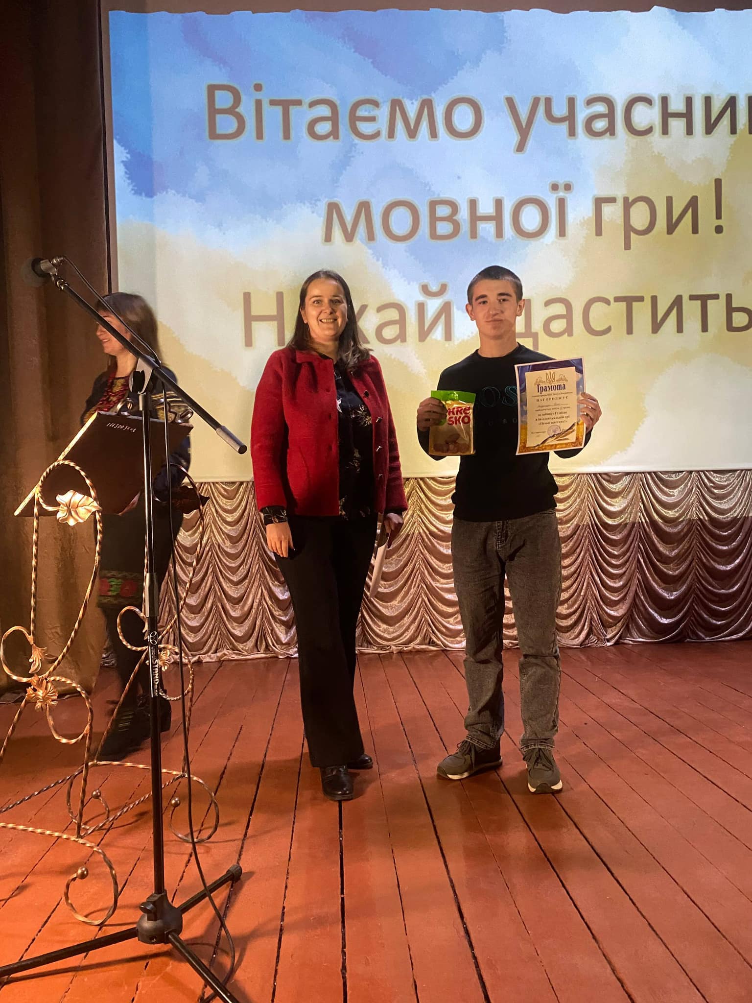 Мовну гру «Нехай щастить!» провела викладачка української мови та літератури Краснюк О.В., яка створила для всіх атмосферу доброзичливості, творчості й любові до українського слова.