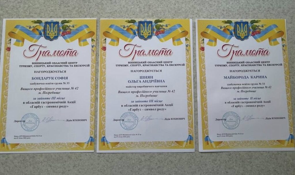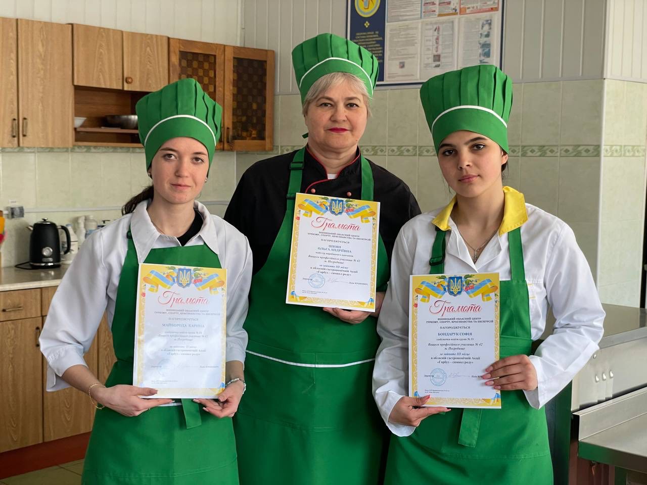 Учні групи 33 з професії “кухар, кондитер” Софія Бондарук, Карина Майборода, майстер виробничого навчання Ольга Шиян вибороли перемогу, здобувши 2, 3 місце.