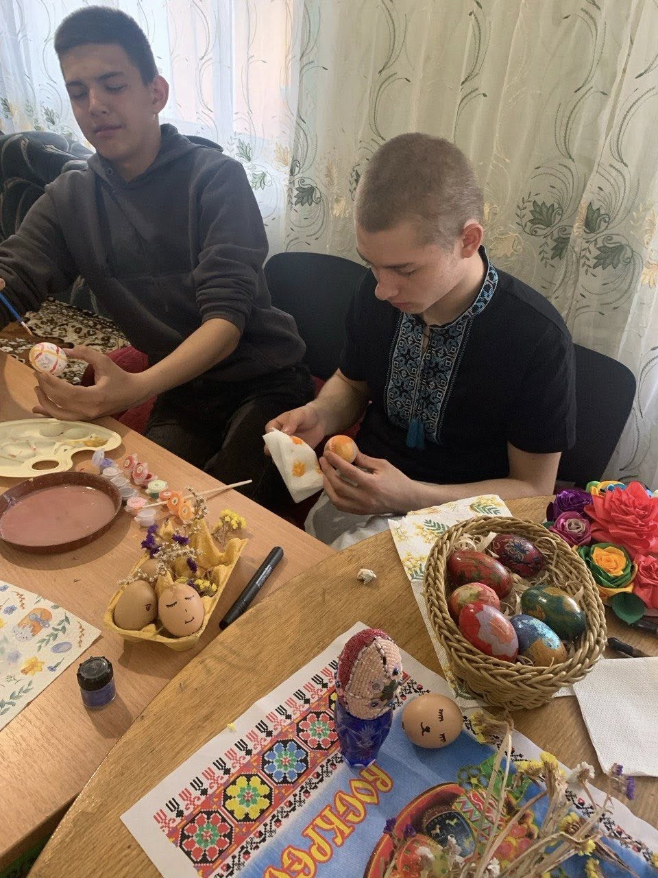 Не відступають від традицій і в нашому навчальному закладі. Напередодні свята учасники гуртка «Українські візерунки» під керівництвом виховательки Лисак Г. І. організували та провели виховний захід «Писанкові барви». Його метою стало дієве залучення учнів до вивчення історії свого народу, звичаїв і обрядів, що тісно повʼязані з писанками, а також технологією їх виготовлення.