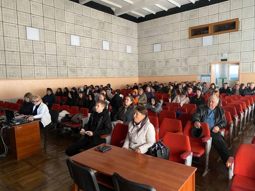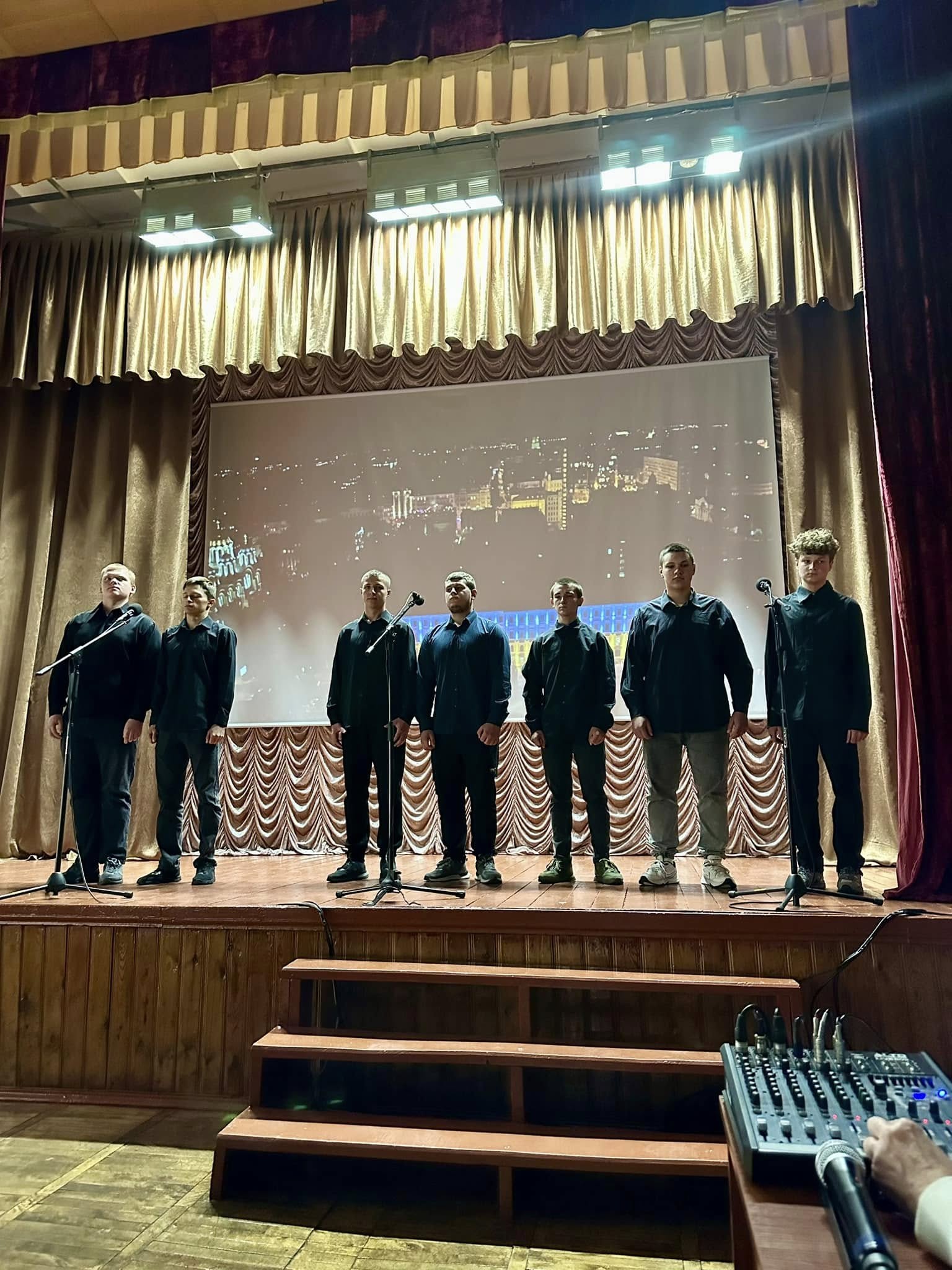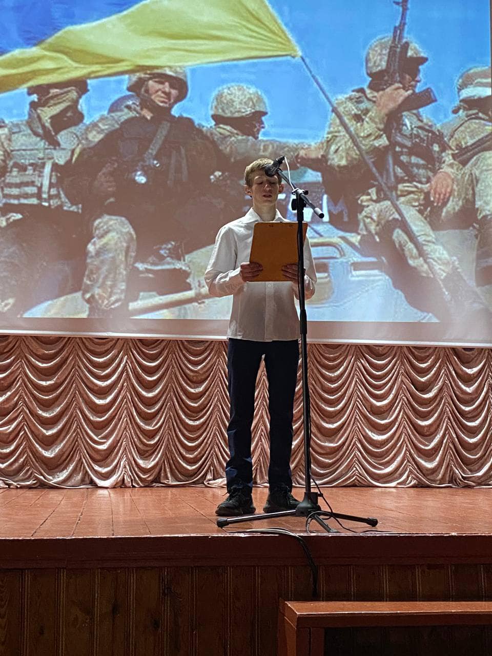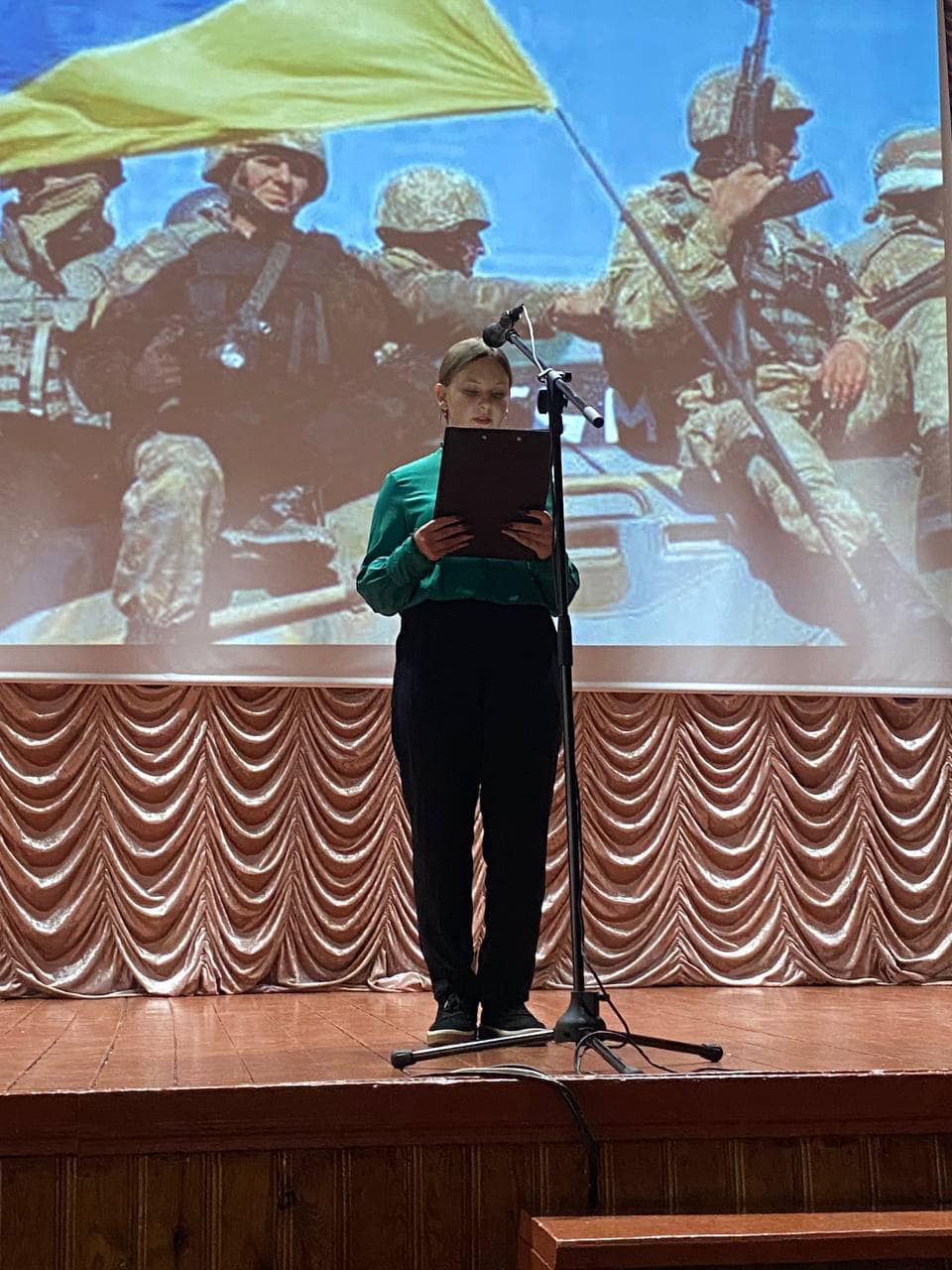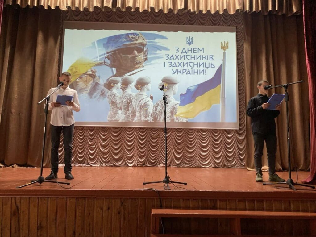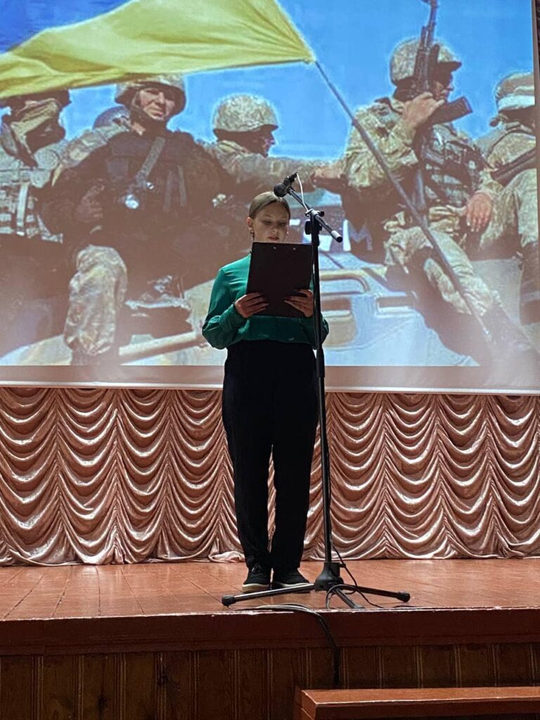 На сцені нашого актового залу з уст ведучих М.Швеця та І.Андрощука лунали слова вдячності захисникам, які воюють чи воювали рідну країну. Особлива вдячність поляглим на полі бою за честь та гідність України.