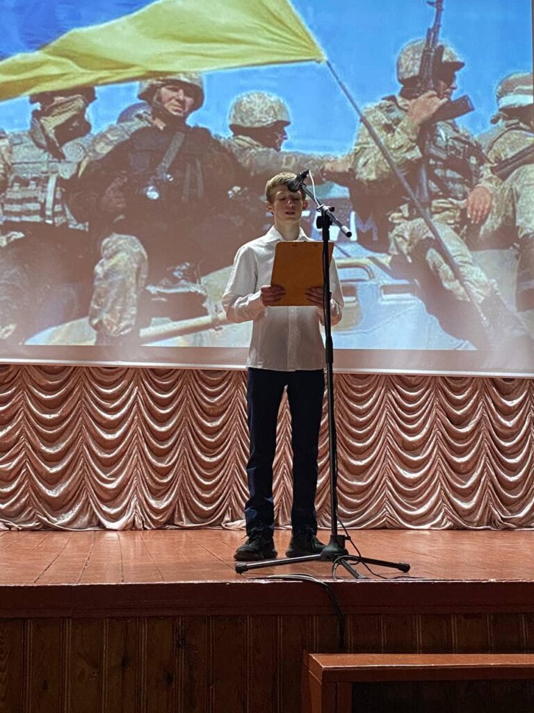 3 уст К.Щелкунової, М.Іванишиної, Р. Коваленка, М.Чернявського лунали поезії відомих український поетів. Гурт «Нове покоління» виконав ряд пісень: «В небо дим», «Обійми мене», «Не твоя війна», а пісню «Воїни добра» – здобувач освіти 11 групи Яворський Назарій .